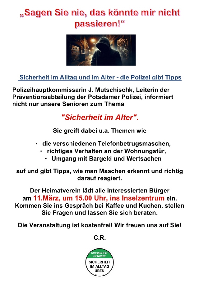 Erste Hilfe im Familien- und Freundeskreis für Jung und Alt fand am 8. November 2025 im Töplitzer Inselzentrum statt. Um 9 Uhr vormittags begrüßten Frank Huber und drei Kameradinnen der Feuerwehr Töplitz ein gutes Dutzend Gäste zu einer Informationsveranstaltung zum Thema: Erste Hilfe, speziell im Familien- und Freundeskreis. Neben theoretischem Grundwissen wurde alles auch anhand praktischer Beispiele und Vorgehensweisen vorgeführt und gemeinsam durchgespielt.