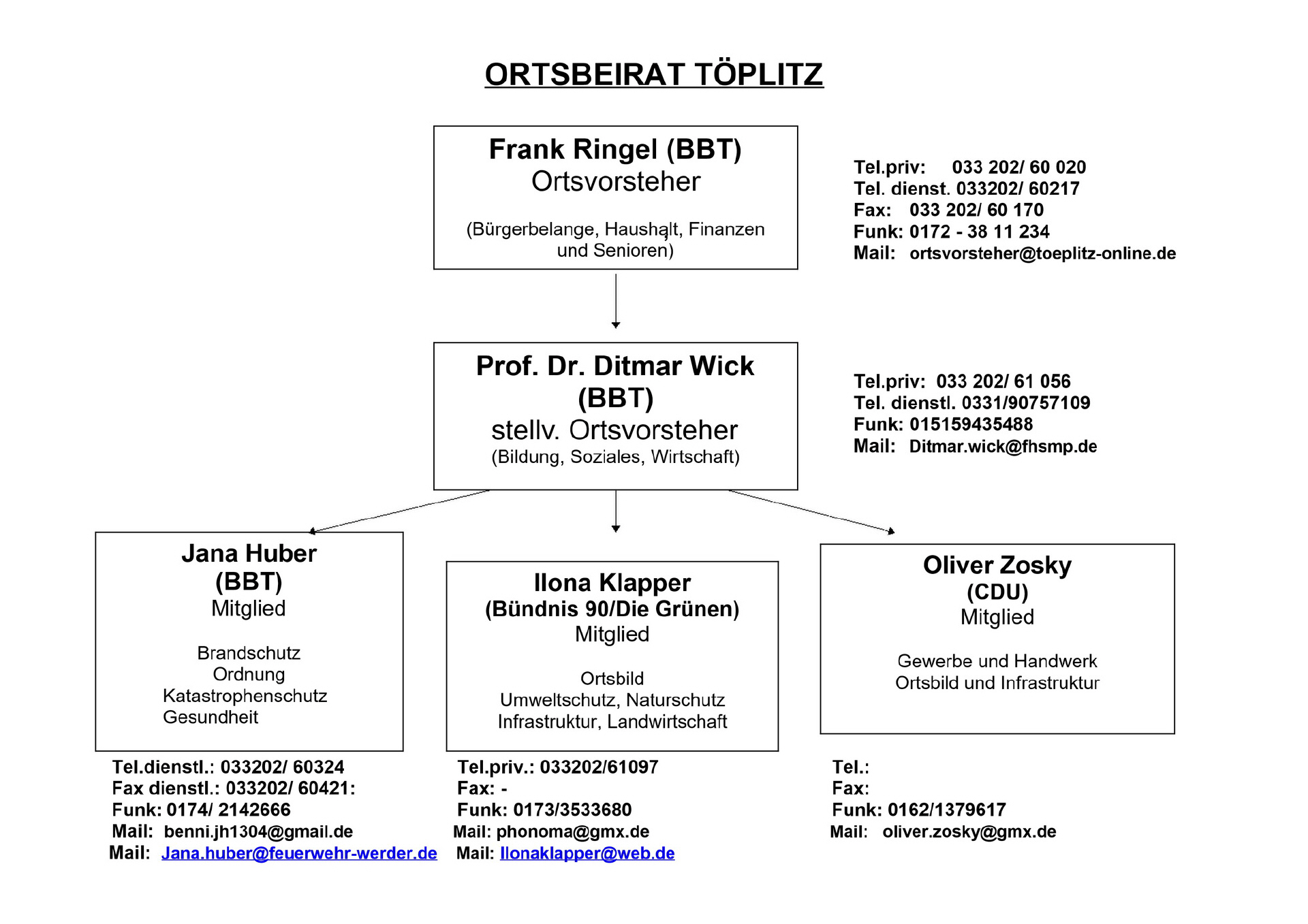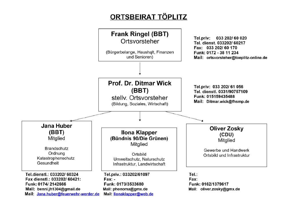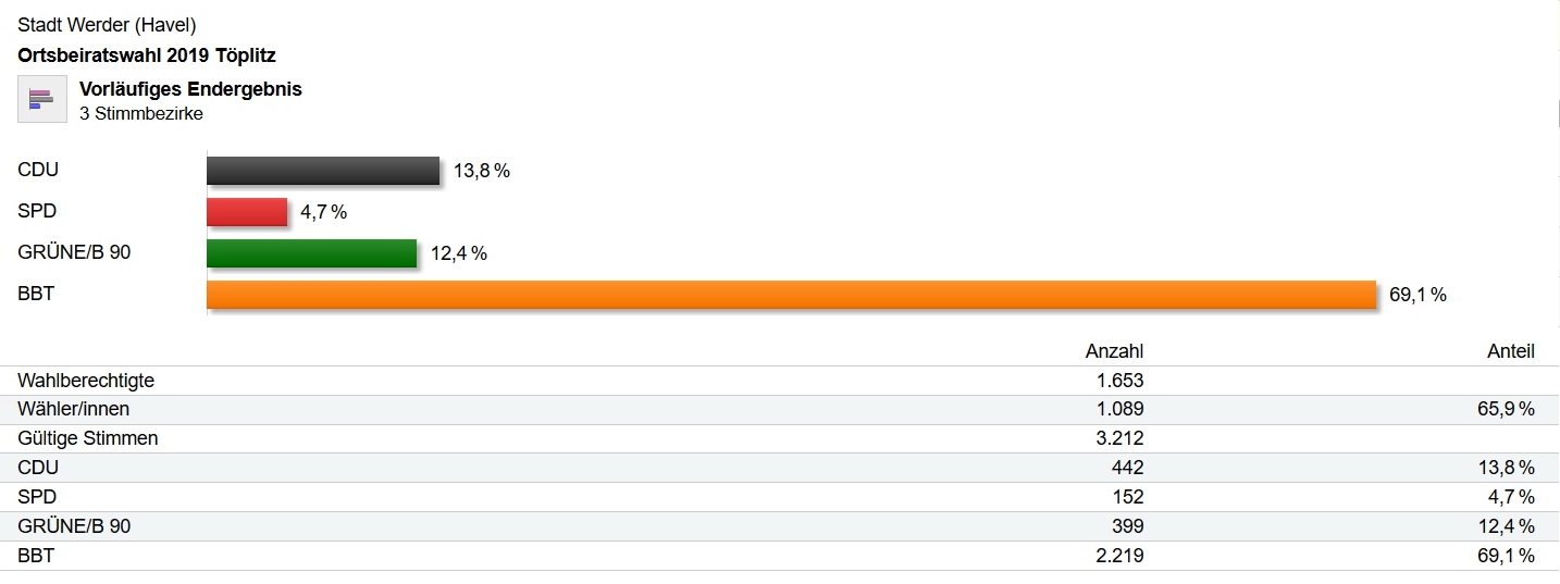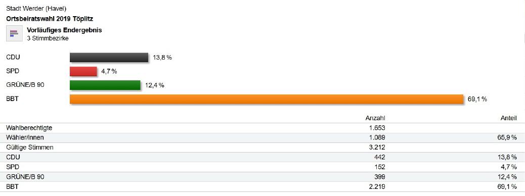 Verteilung der gültigen Stimmen auf die Bewerber - Wahl Ortsbeirat Töplitz und Stadtverordnetenversammlung Werder (Havel)