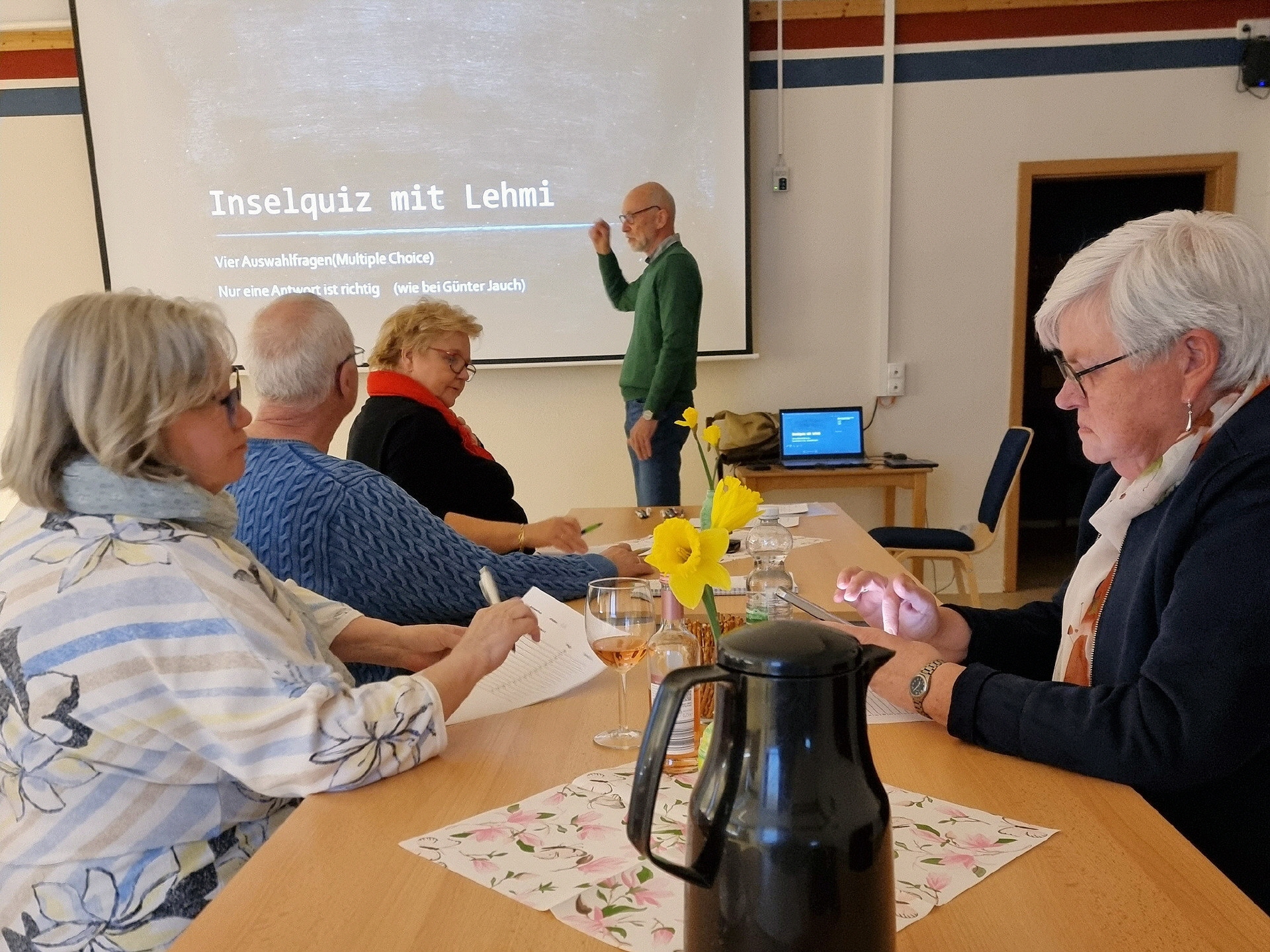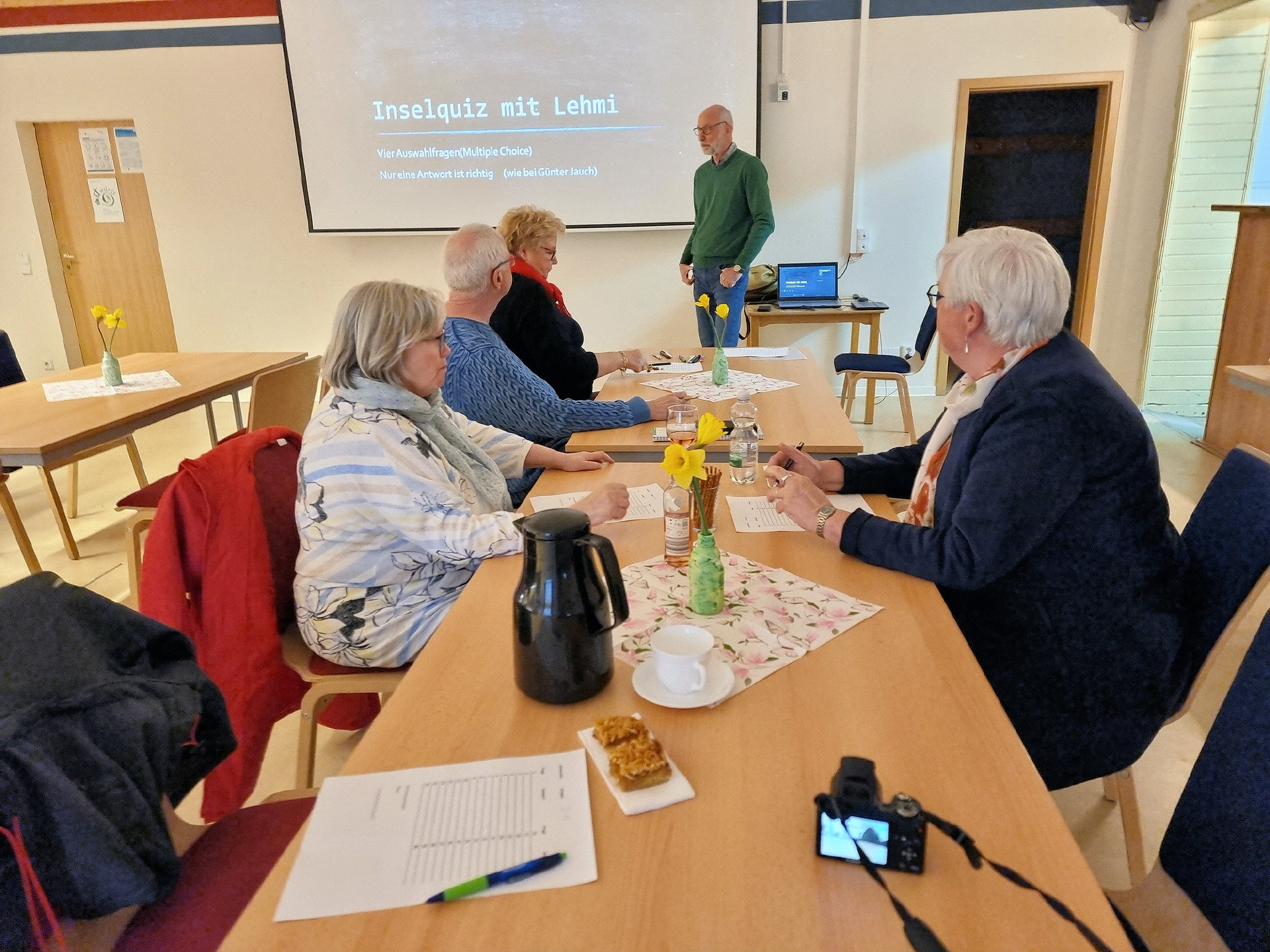 Am 10. April 2026 fand im Töplitzer Inselzentrum ein Quizabend statt. Catrin Ramdohr vom Heimatverein hieß alle zu einem entspannten Abend willkommen, ähnlich wie bei Günter Jauch. Die Atmosphäre war locker und angenehm. Frank Lehmann aus Töplitz leitete den Abend mit seinem großartigen Quiz.